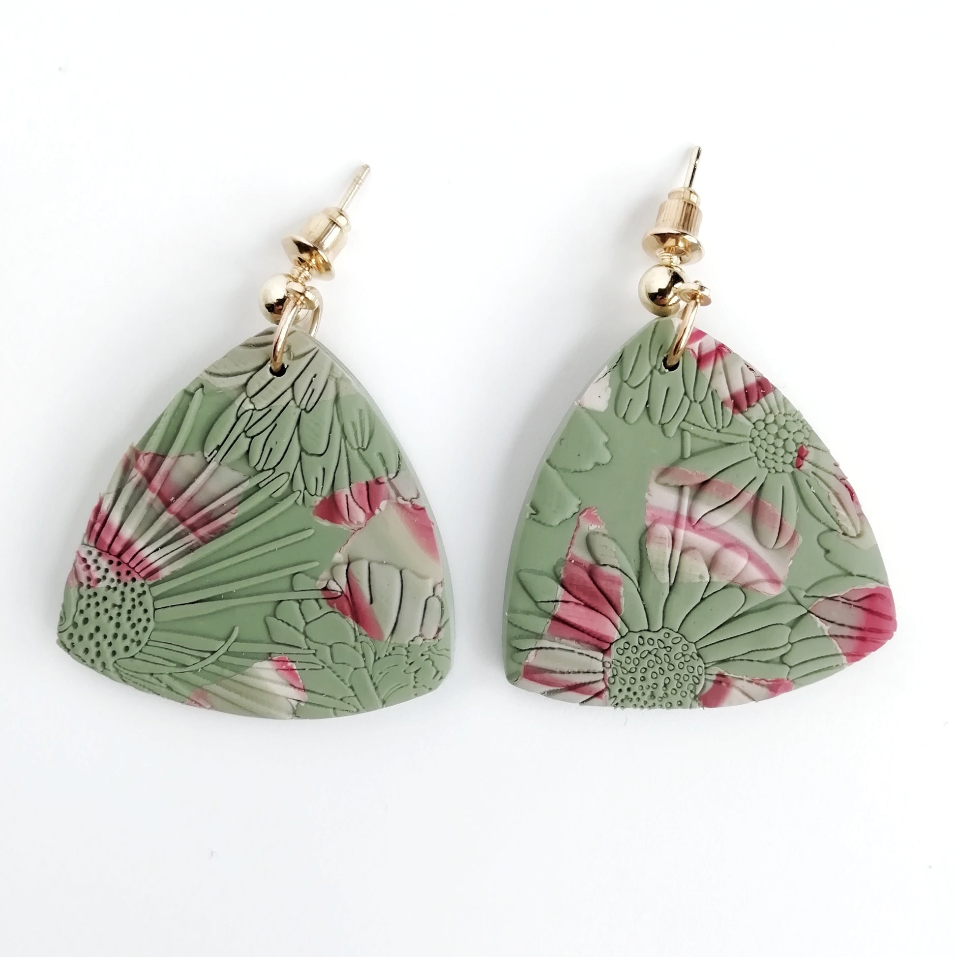 Each pair in the Blush Reverie Collection is hand-sculpted from marbled polymer clay, each piece blends soft pastel tones like a painted dream, adorned with subtle texture for quiet elegance. No pair is the same.