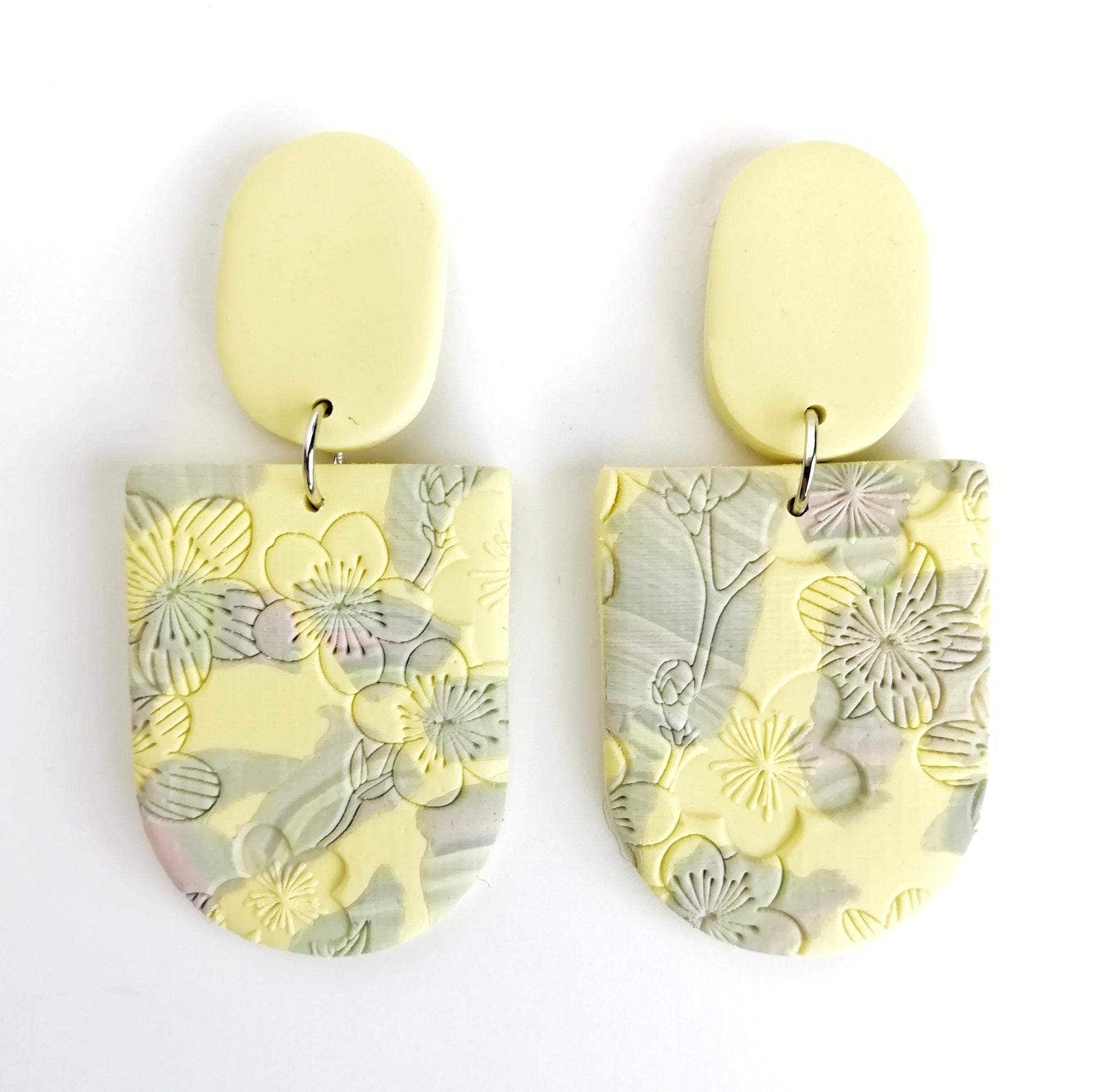 Each pair in the Blush Reverie Collection is hand-sculpted from marbled polymer clay, each piece blends soft pastel tones like a painted dream, adorned with subtle texture for quiet elegance. No pair is the same.