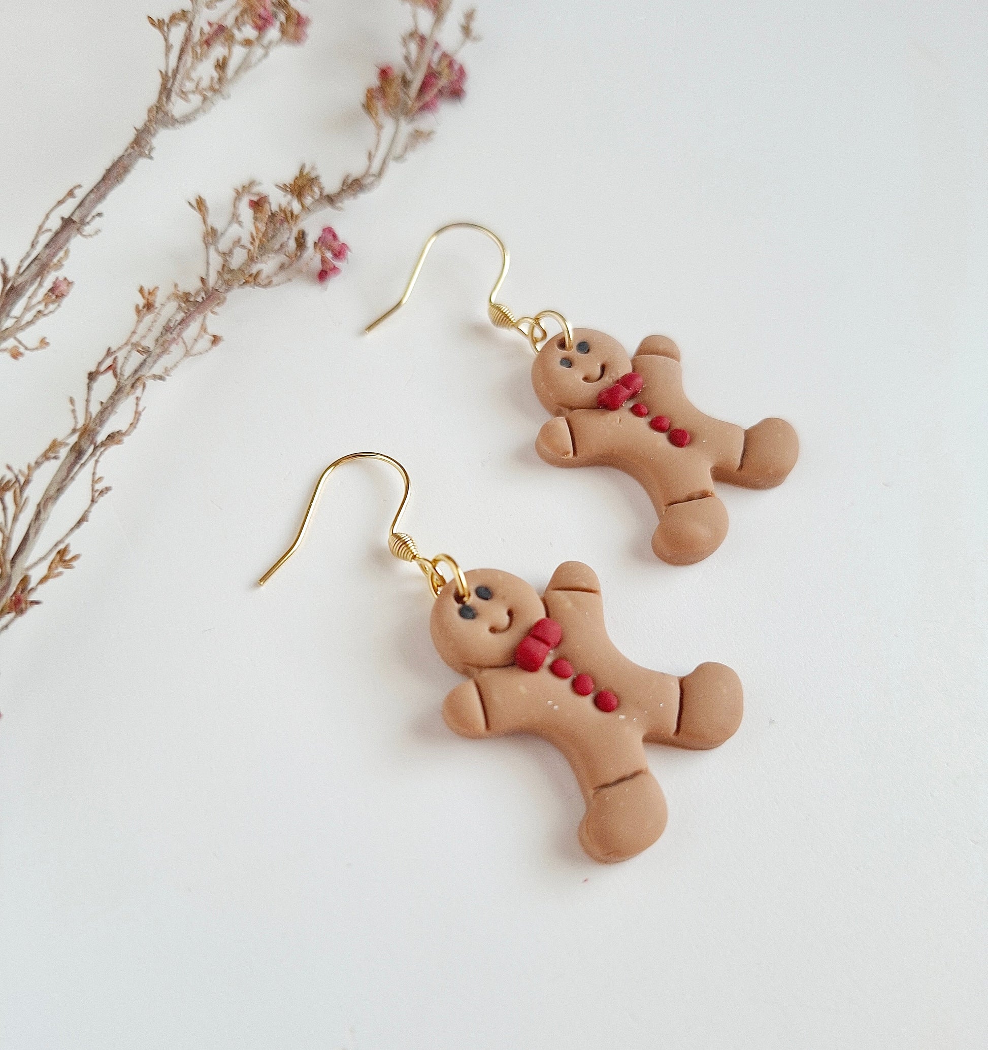 Each pair in the Christmas Collection is lovingly hand-sculpted from polymer clay, capturing the warm, whimsical charm of festive gingerbread characters. Every tiny detail—from the icing smiles to the winter accessories—is crafted to bring joyful holiday spirit to your outfit. No pair is the same.