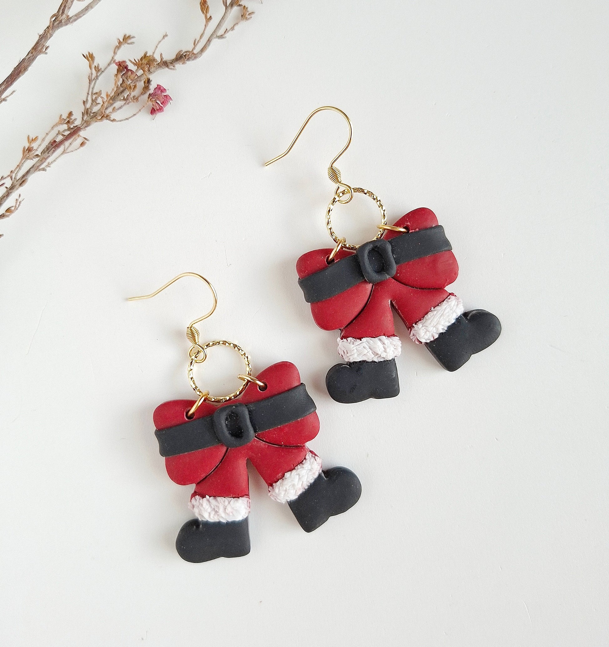 A playful festive favourite! These Santa’s Suit earrings are hand-sculpted from vibrant red polymer clay, finished with fluffy white trim details and miniature buckle accents. They add a bold, joyful touch to any Christmas outfit.